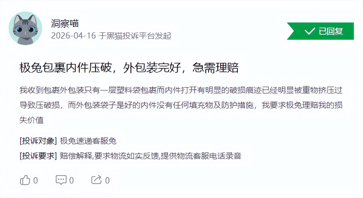截至4月21日,浏览黑猫投诉,极兔累计投诉量已达55931条,主要集中在快递派送、售后服务、丢件消极回应等质疑上。