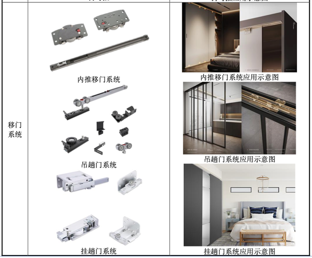 2013年,图特股份推出带缓冲功能的移门系统,市场反馈良好。2019年,图特股份开发了橱柜拉篮系列,其中收纳系统产品的开发,使得图特股份进一步加深了与欧派家居、索菲亚等国内头部家居品牌以及国外如EBCO等大公司的合作。至今,图特股份的主要产品包括铰链、滑轨、移门系统、收纳系统、反弹器等各类精密五金产品。