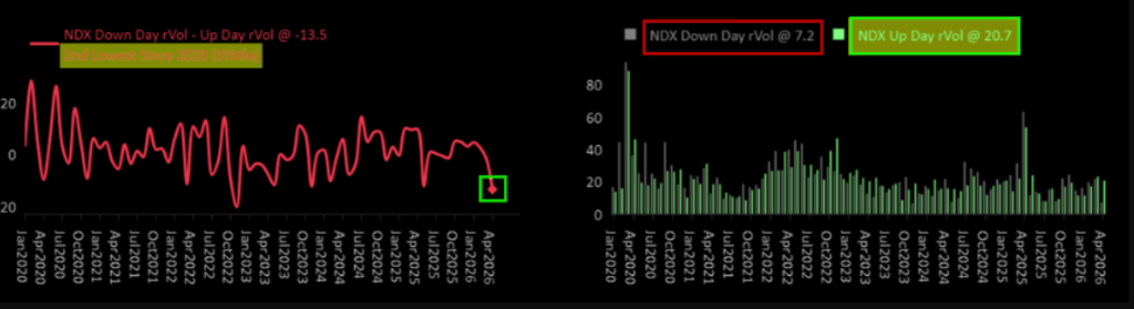 市场已经从过度对冲左尾风险,翻转为追逐右尾机会。本月标普500/纳指在上涨日的波动率,是下跌日的近3倍。据McElligott,由于仓位仍然偏轻,行情持续逼迫投资者追买上行期权。