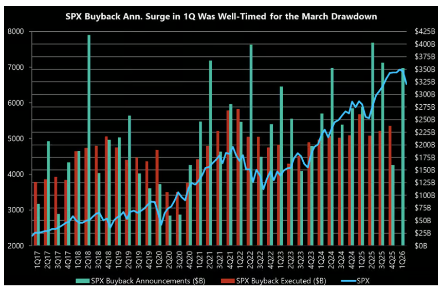 美股创新高时,涌现新买家。一季度标普500成分公司的股票回购授权增量,是过去九年中第七大规模,恰逢3月股价走弱期间。Jefferies认为这对股市是积极信号:“尽管指数已回到历史高位,仍有新买家能够入场。”