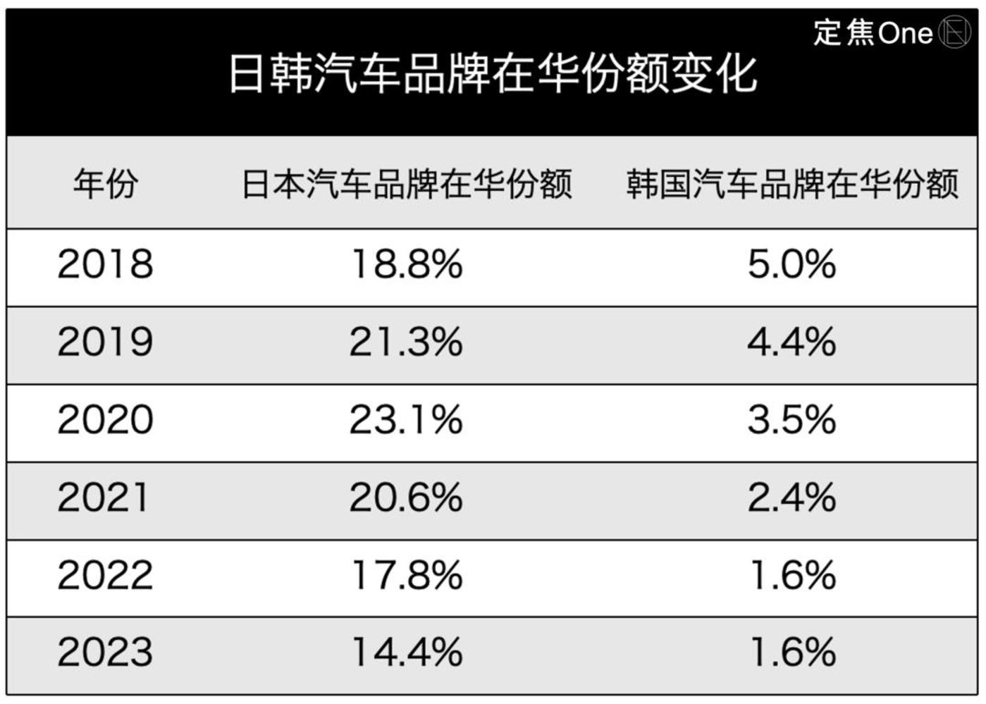 但如今日韩汽车在华陷入困局已成事实,先来看市场份额和销量走势。