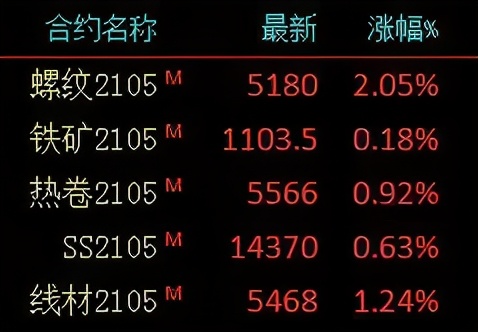 螺纹钢期货、热卷期货、线材期货2105合约纷纷创下上市以来新高,分别达5200元/吨、5589元/吨、5540元/吨。