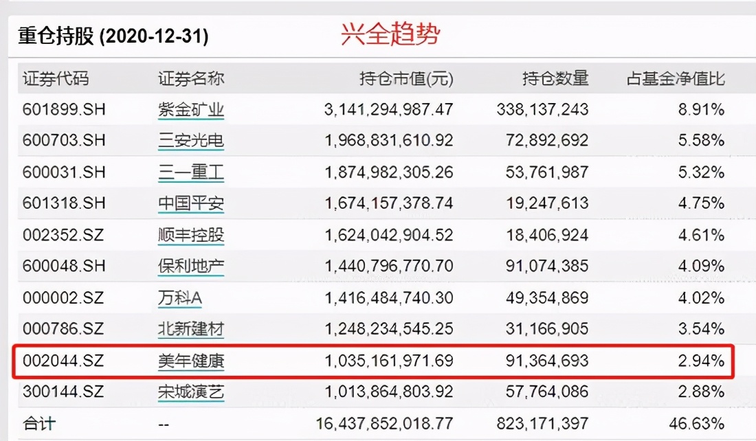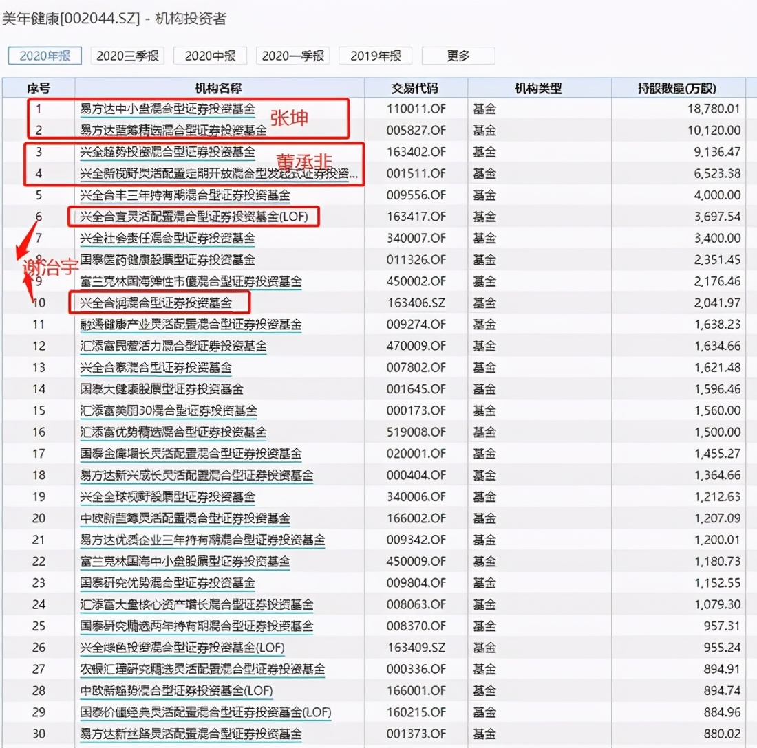 美年健康为董承非的兴全趋势的第9大重仓股,为董承非另一只基金兴全新视野的第12大重仓股。