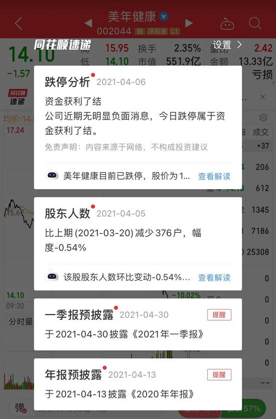 清明假期后首个交易日,A股市场窄幅震荡,也没有什么明显利空。然而,今日下午,美年健康却突然闪崩跌停。跌幅10.02%,成交额13.3亿元,收报14.1元,总市值552亿元。今日跌停之前,该股市值高达613亿元。