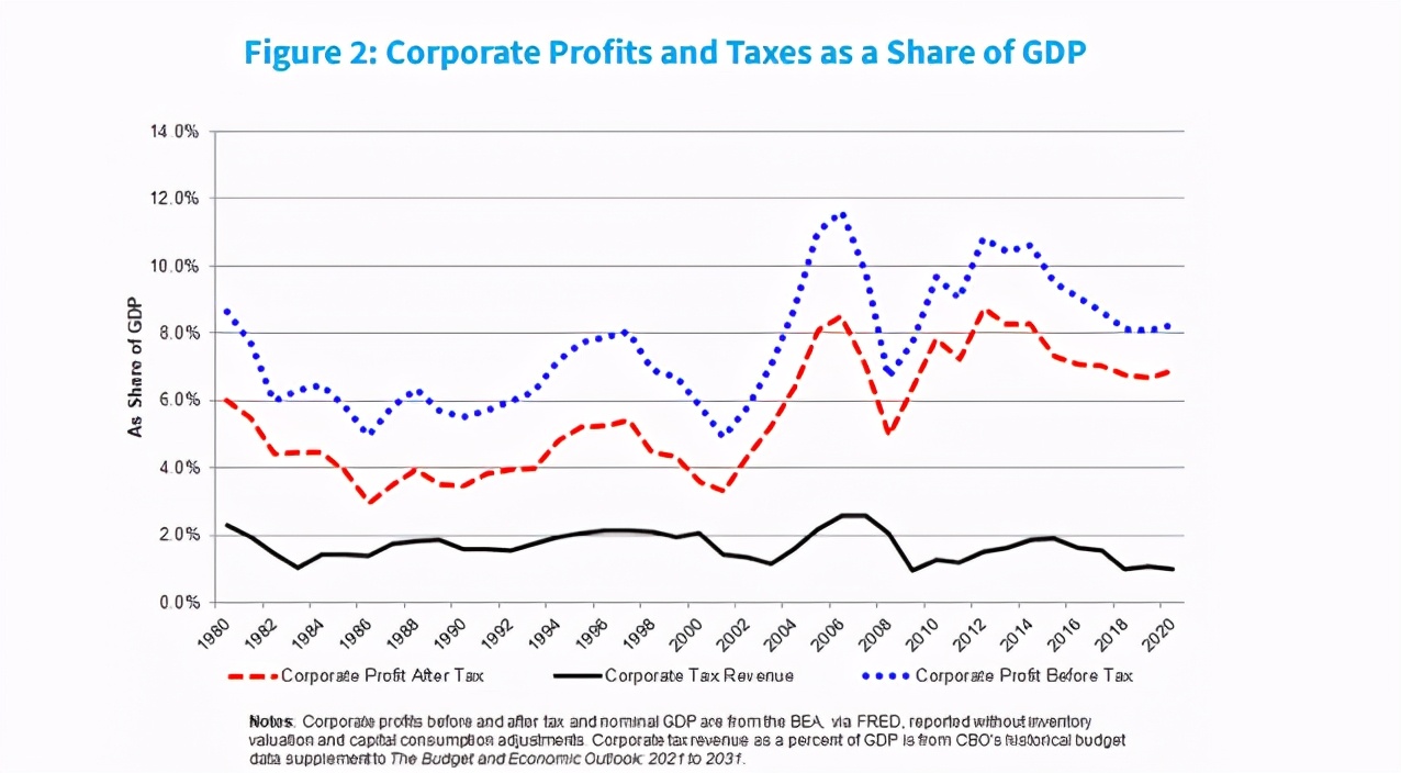 耶伦在文章中称,在特朗普政府时代,美国国会颁布了2017年《减税和就业法案》(TCJA),其结果是企业税收大幅减少。彼时,美国企业税从35%降至21%。过去三年中,美国公司税收已降至第二次世界大战以来的最低水平,占美国国内生产总值(GDP)的1%。到2020年,美国许多最大的企业都没有在缴纳联邦税。