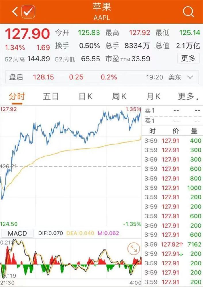 美大型科技股集体上涨,苹果、亚马逊涨超1%,奈飞涨0.45%,脸书涨2.23%。