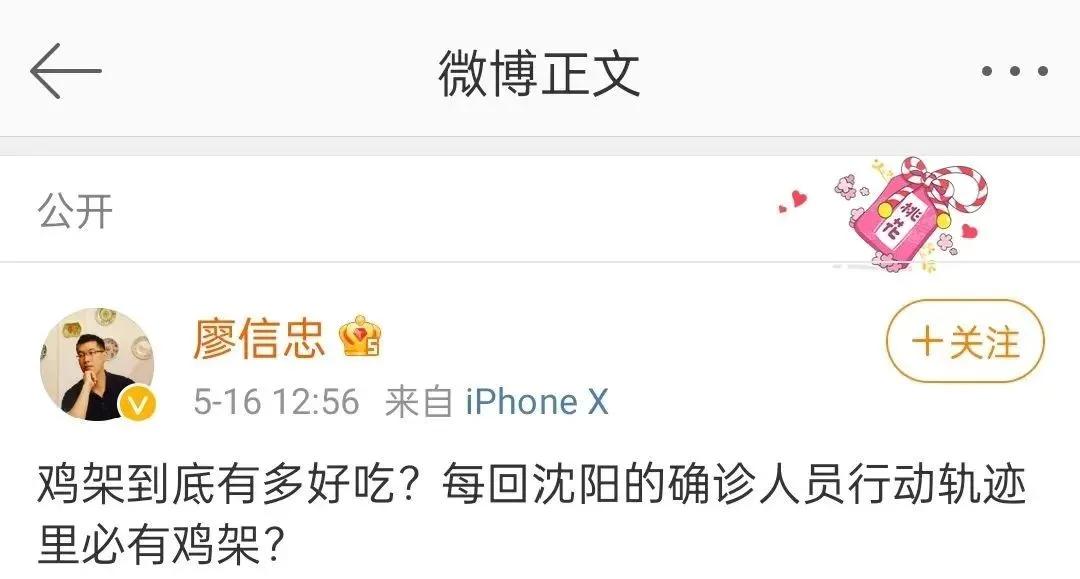 据了解,这个微博热搜起源于沈阳一新冠确诊患者的流调。