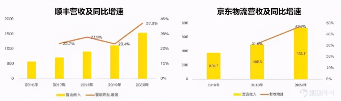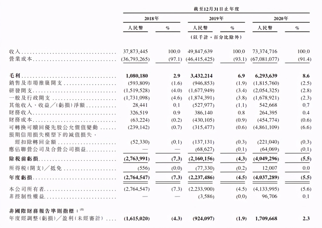 根据招股书,2018、2019及2020年,京东物流营收分别为人民币379亿元、498亿元和734亿元,其中2019年同比增长31.6%,2020年同比增长47.2%。但在营收增长的同时,2020年的亏损净额也有扩大。京东物流于2018、2019及2020年产生的亏损净额分别为人民币28亿元,人民币22亿元及人民币40亿元。
