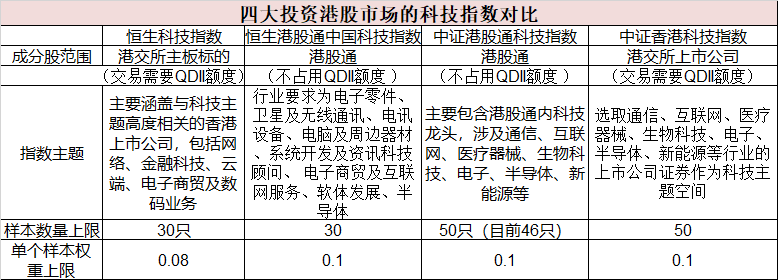 尽管上述获批的几只ETF所跟踪的指数都是投资香港科技股的指数,但在指数编制上还是存在差异。