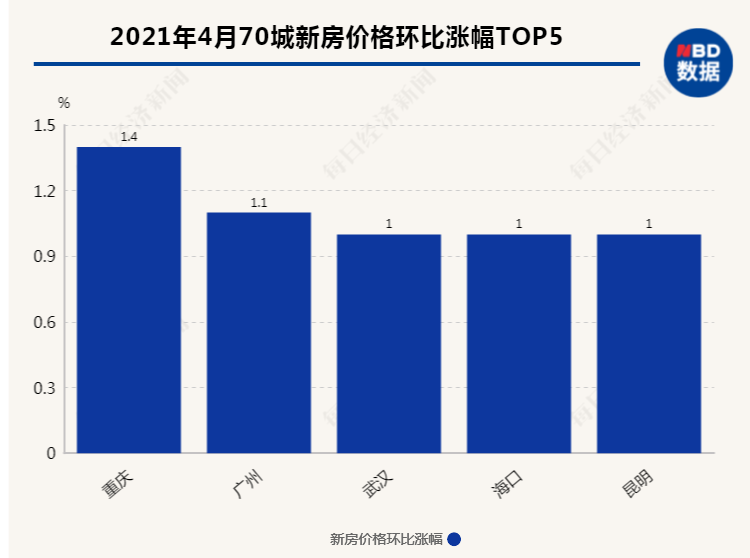 值得注意的是, 重庆新房环比上涨1.4%,领涨70城,二手房环比上涨1.3%,仅次于徐州的1.4%的环比涨幅,居第二位置。与3月相比,重庆新房和二手房价格涨幅均扩大0.5个百分点。