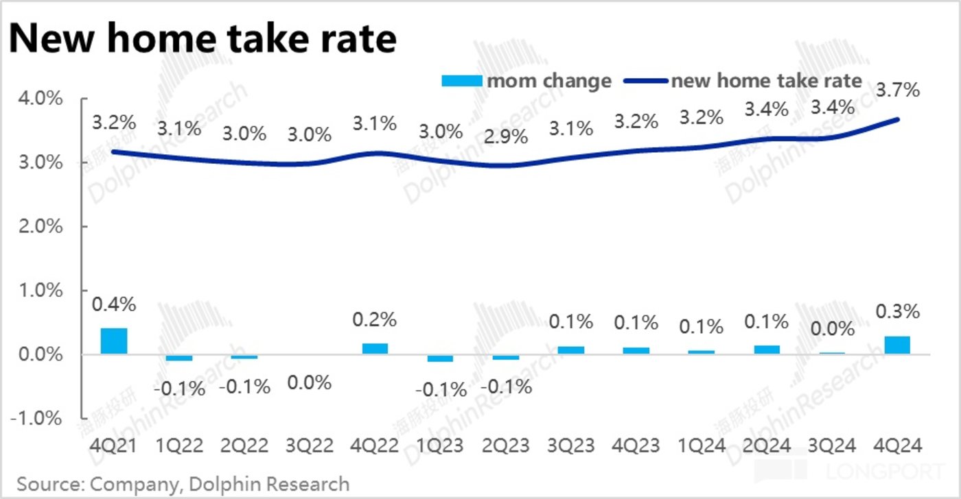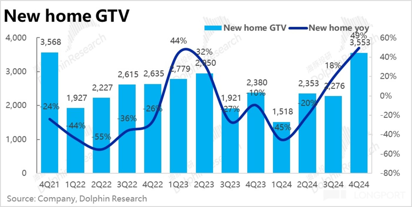 3、以家装、租赁、家居服务为主的二航道本季总收入达到 91.3 亿。看起来并没受到楼市支持政策的利好,随着基数上升,营收增速依旧在平稳放缓趋势内,本季为 39%,略微好于市场预期。