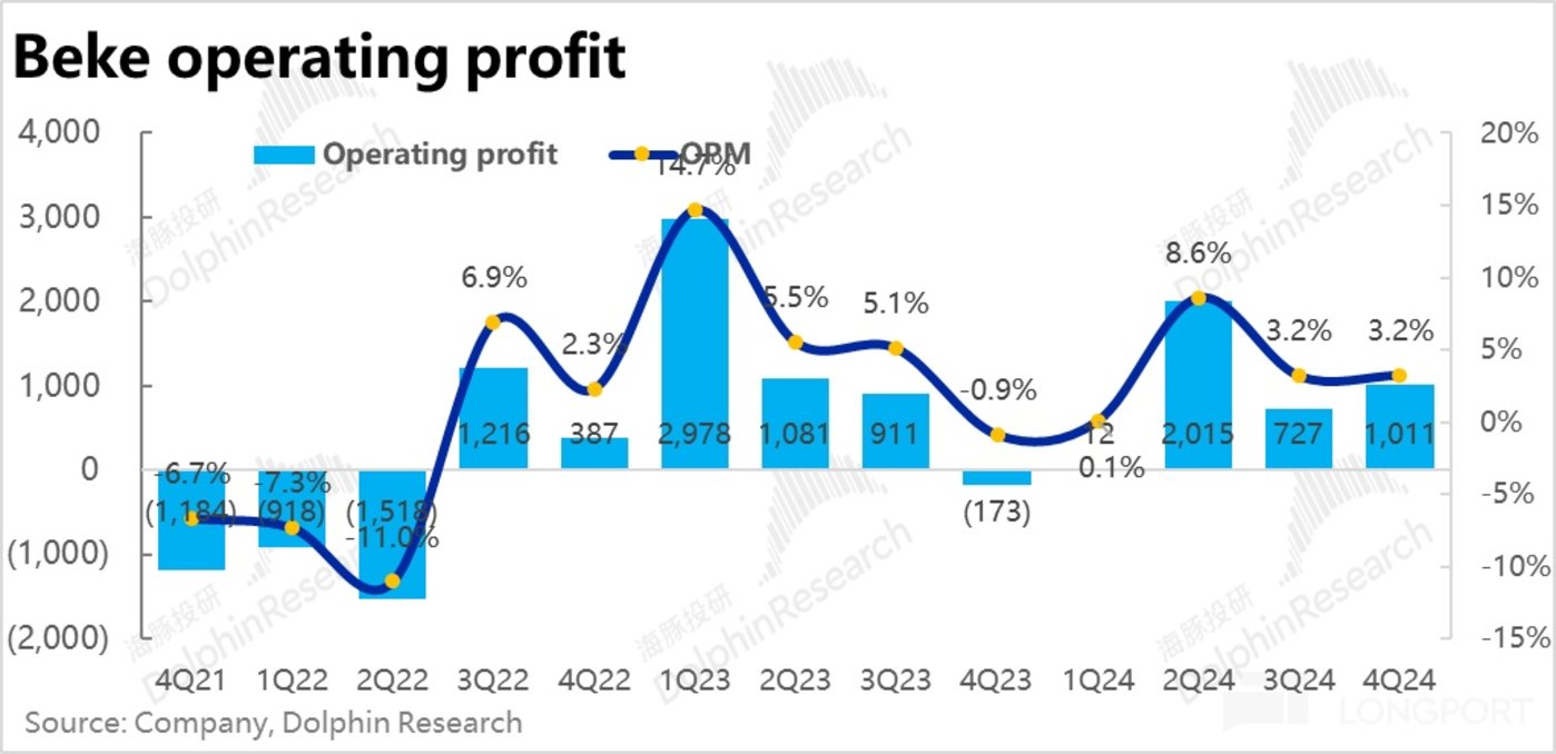 4、然而在政策的利好下,本季度尽管贝壳(尤其是房屋中介业务)的增长呈现爆发式的回暖。但在利润端则缺乏惊喜。并未呈现出利润随营收一同大涨的迹象。
