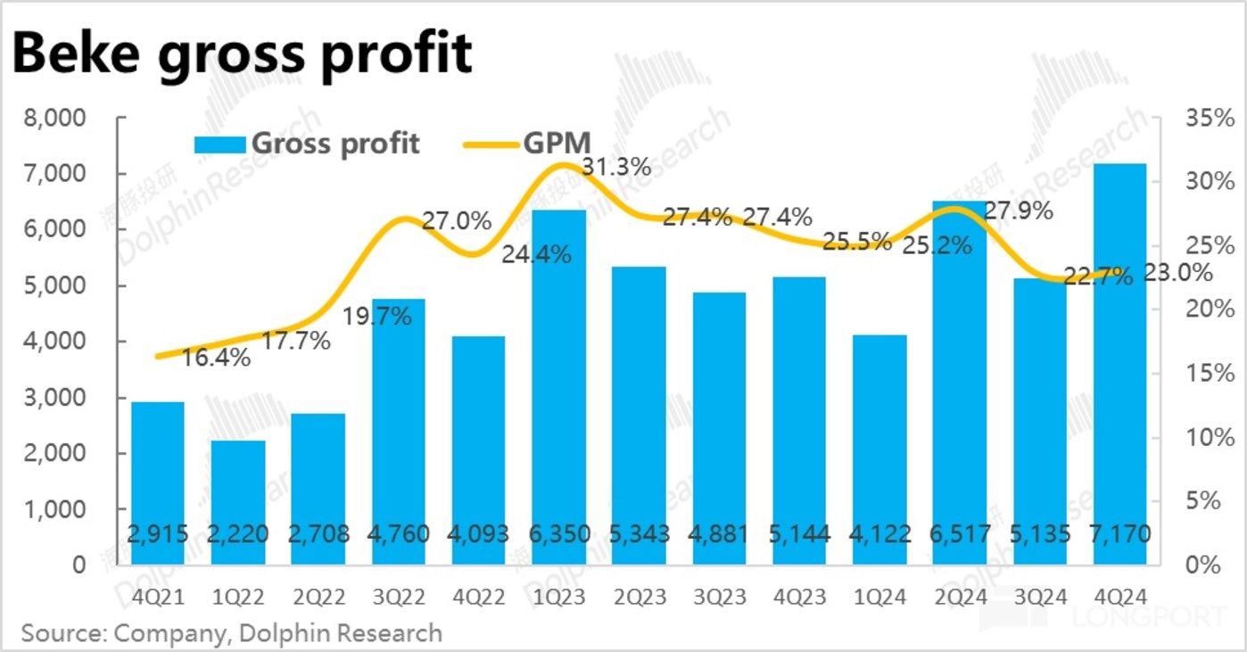 但是,正如我们在火线解读中提到的。在巨大的行业复苏红利之下,贝壳虽享受到了业务体量的快速扩张,但却并未能带来增量的利润是本次财报最大的问题。在不对员工 “苛责”,管理员工分佣比例的情况下。住房中介天然重人力和履约的特性,使得毛利率并没有呈现天然随规模扩张,自然提升的特性。