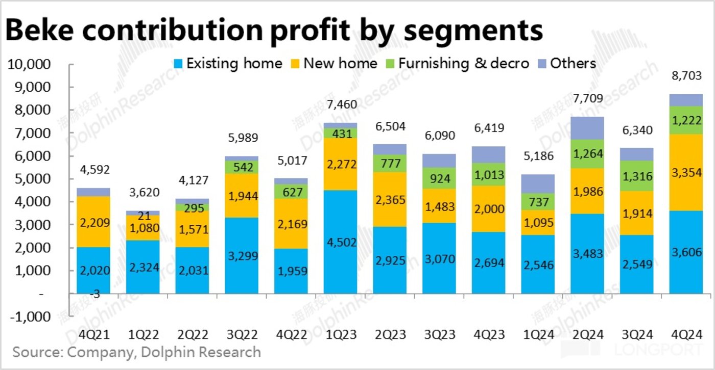 1)存量房业务本季的贡献利润为 36.1 亿,虽然利润额环比显著增长,且稍高于预期的 35 亿。但贡献利润率为 40.4%,相比上季的 41% 反而是下滑的,应当是因为本季存量房的变现率是下降的。即利润额的增长和超预期完全源自收入体量的增加,利润率却并未随着规模增加而提高(至少本季是如此的)。