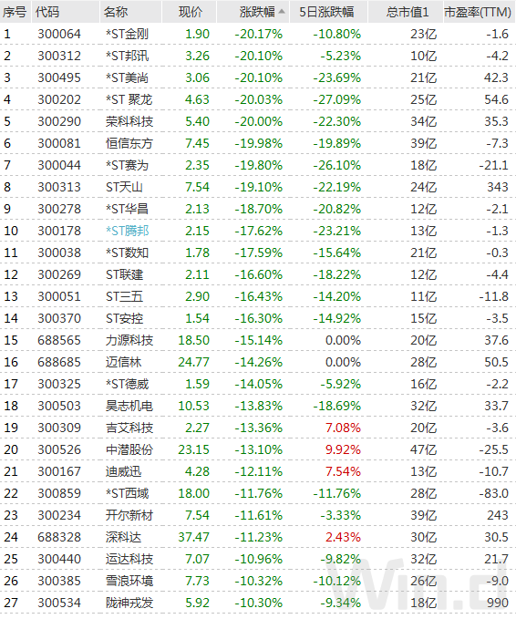 截至收盘,东方时尚、今创集团、隆基机械、祥鑫科技、法兰泰克等跌停,昊志机电跌超10%。当天,小市值公司普遍大幅下跌,跌停及跌幅超过10%累计超过50家,从相关公司市值来看,大约在10-20亿元。