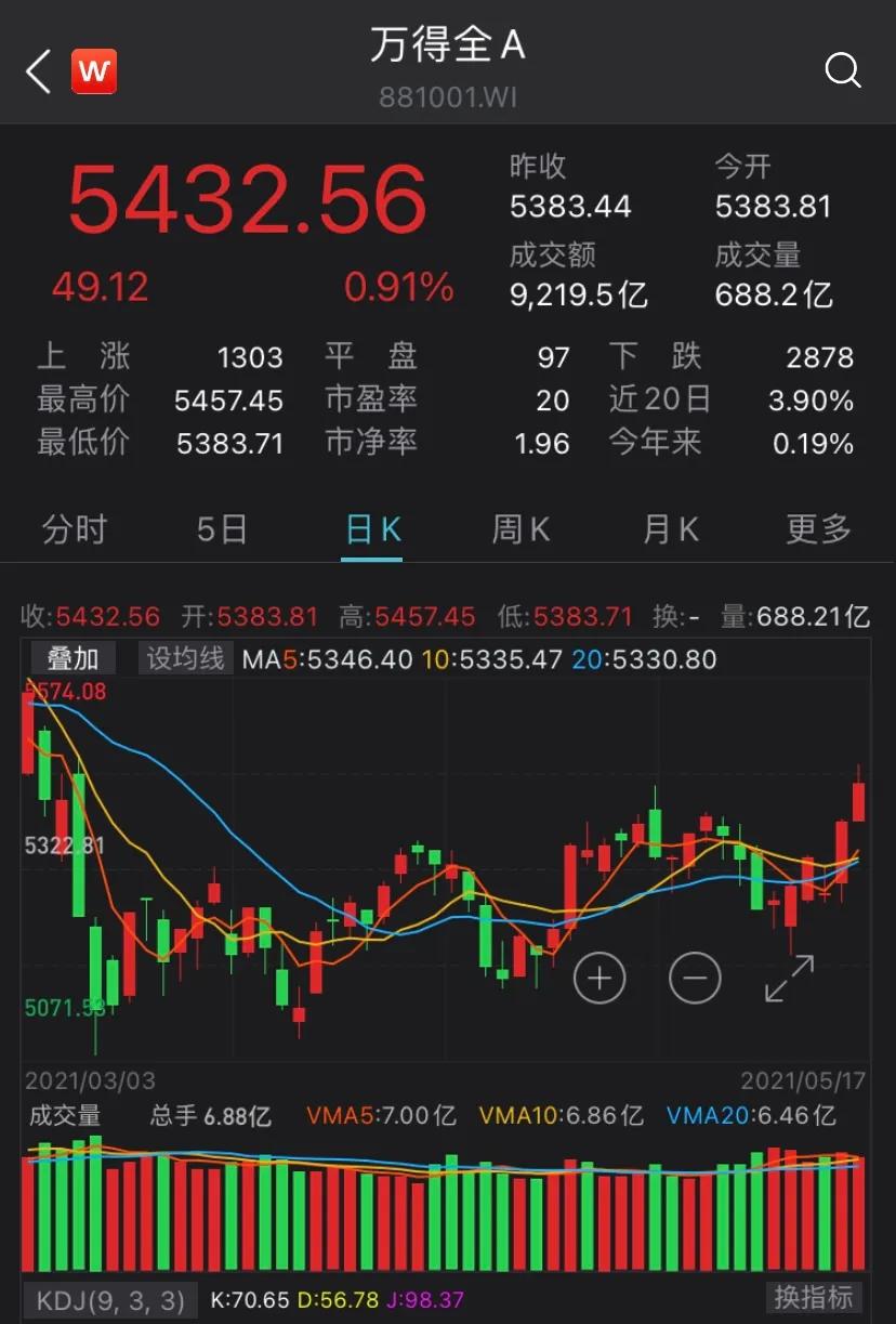 从5月17日A股具体走势来看,延续上周五放量拉升的态势,全天高开高走,2个多月以来成交量首次突破9000亿元。与此同时,股指亦同步创出阶段新高。