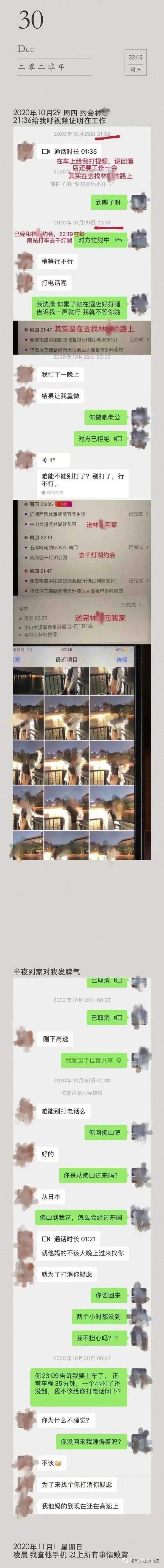 8、大抵是自从我犯了错误以来,她就臆想症越发严重,翻看小红书里的各种瓜时会认真做好记录,我虽察觉到,但并没有在意,原来她下的是这么大的一盘棋,我好好跟你谈恋爱,你却跟我下棋。从某个时间开始,她会刻意让我在微信里回复一些文字,我的思路有时候是比较粗糙的,为使其开心,觉得倒也无妨,便一一按她说的去回复,没想到这一一都成了她如今所谓的“证言”我的毕业证学位证身份证工卡等等个人信息全部被她拍照留存。对各种套路她本来就是熟稔于胸,是个聪明人,懂得如何去抹黑一个人,有六部手机和各种朋友,也能搞来足够的工具和材料去抹黑一个人。各种查岗,每天让我拍环境和时钟,有时候在忙得要死时候不接电话那便又是一通争吵,总以为我在乱搞,每天臆想各种场景,并编制了所谓的约炮名单......