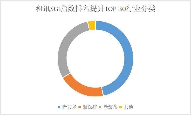 整体而言,和讯SGI指数评分排名提升TOP 30名单显示,半导体、计算机及通信、人工智能等新技术行业公司排名提升速度最快,占据多数席位;其次是新装备。