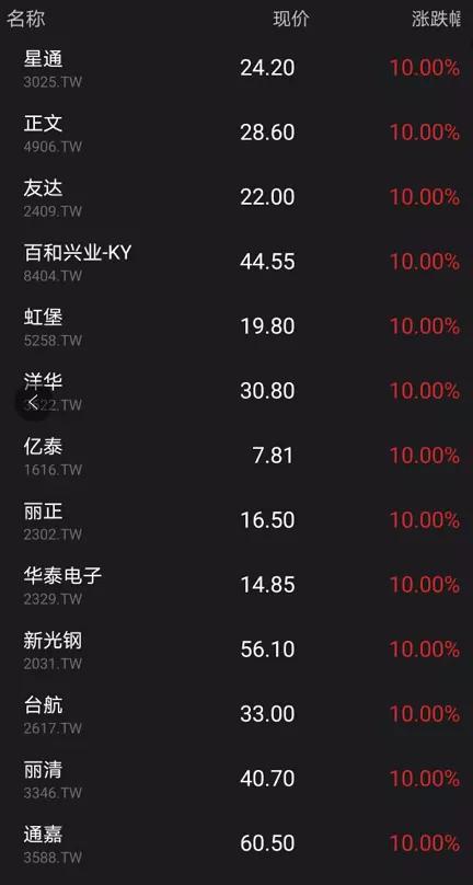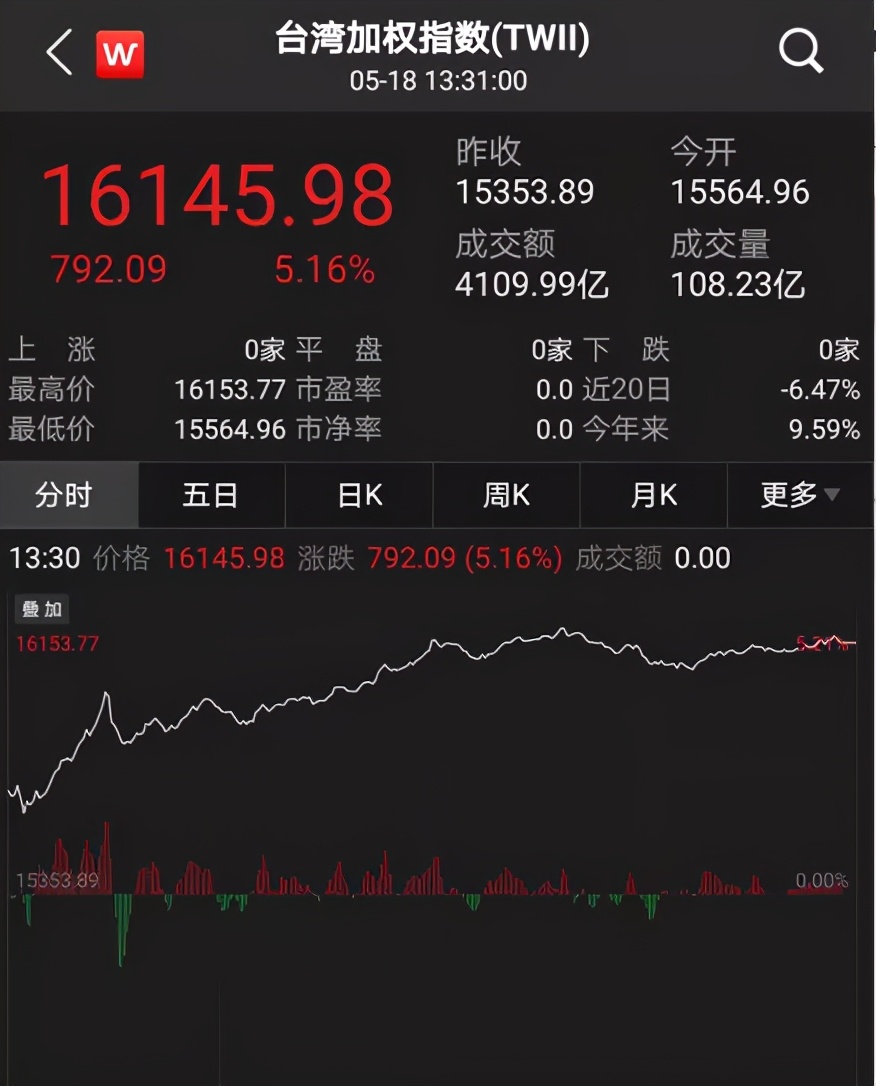 而台湾股市也在今天大涨超5%,创14个月最佳日涨幅。
