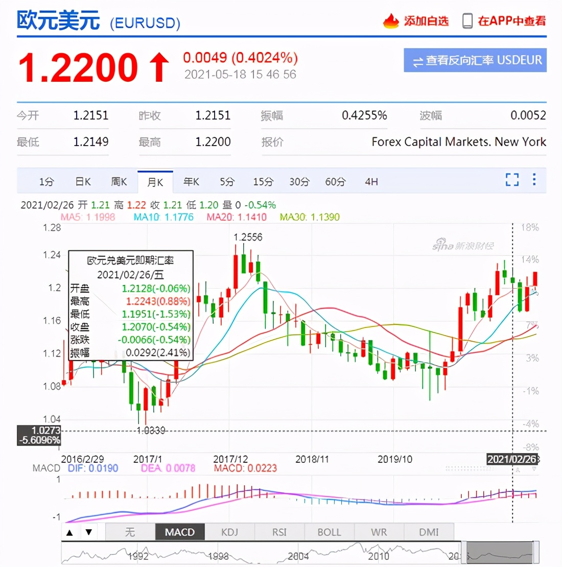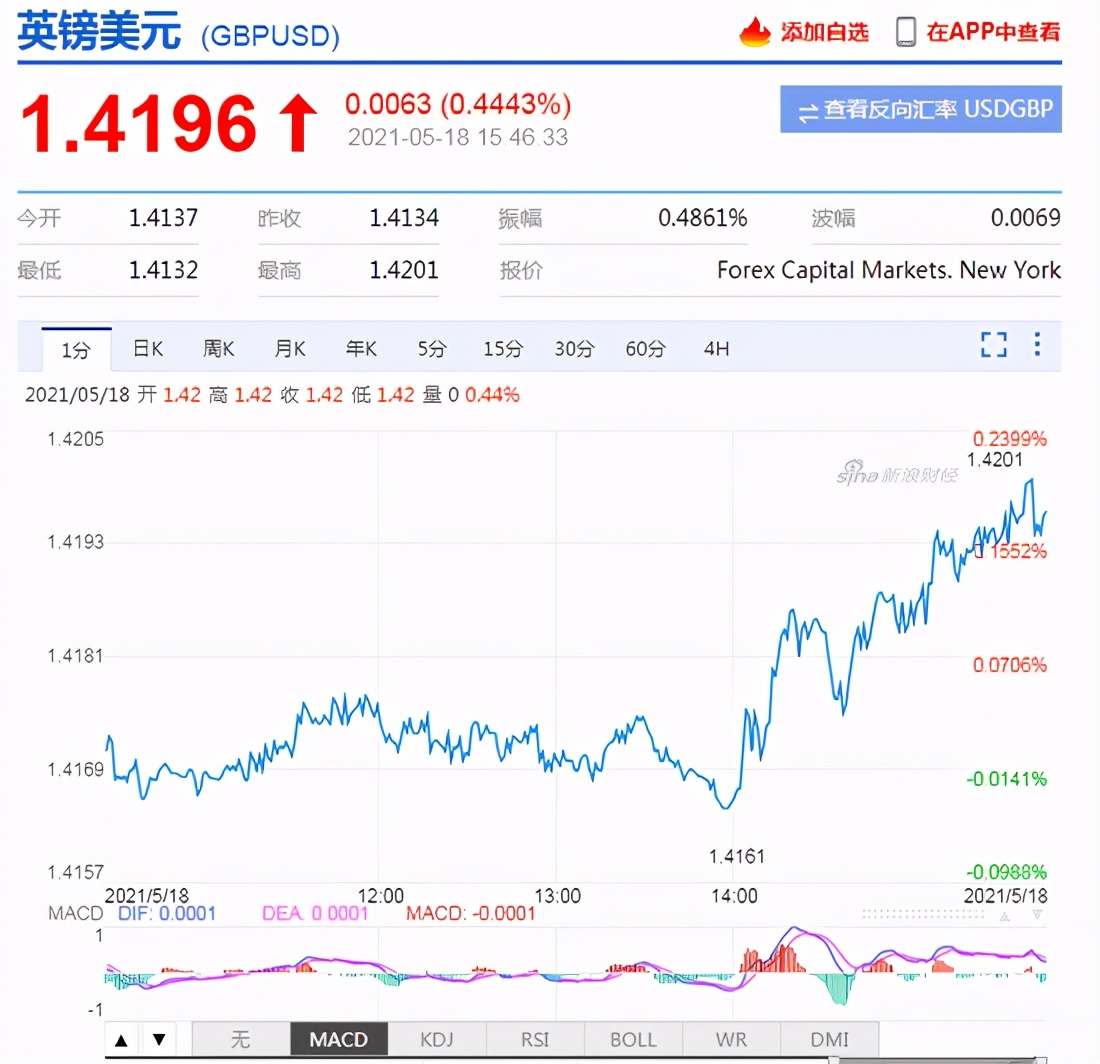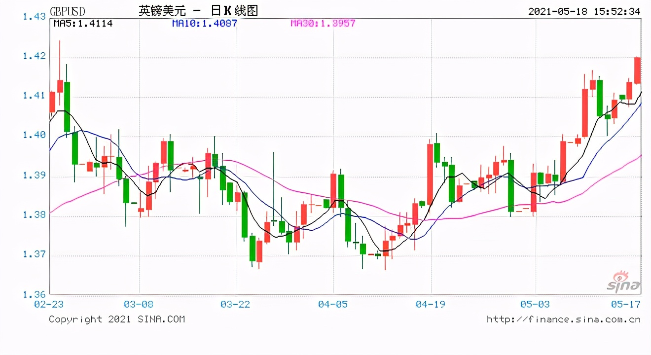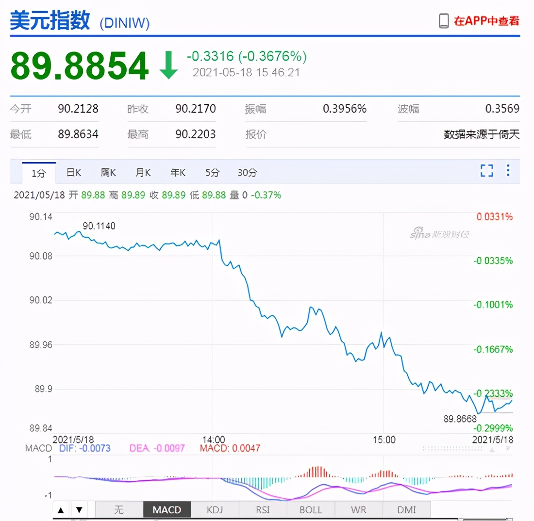 5月18日,美元指数(89.8768, -0.3402, -0.38%)跌破90关口后继续下挫,欧元(1.2200, 0.0050, 0.41%)、英镑(1.4195, 0.0059, 0.42%)持续拉升,双双创2月份以来新高。