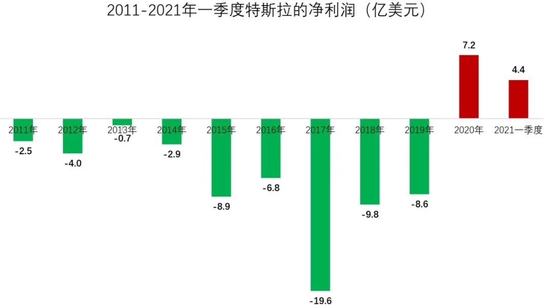 根据财报,2020年四季度特斯拉实现了2.7亿美元的净利润,这是通过向其他汽车制造商出售价值4.01亿美元的监管积分实现的。而2021年一季度特斯拉的监管积分销售收入为5.18亿美元,帮助特斯拉实现4.38亿美元的净利润。据统计数据显示,特斯拉已经积累销售了约16亿美元的监管积分,主要是零排放汽车积分,一定程度上帮助特斯拉摆脱了常年亏损的窘境。
