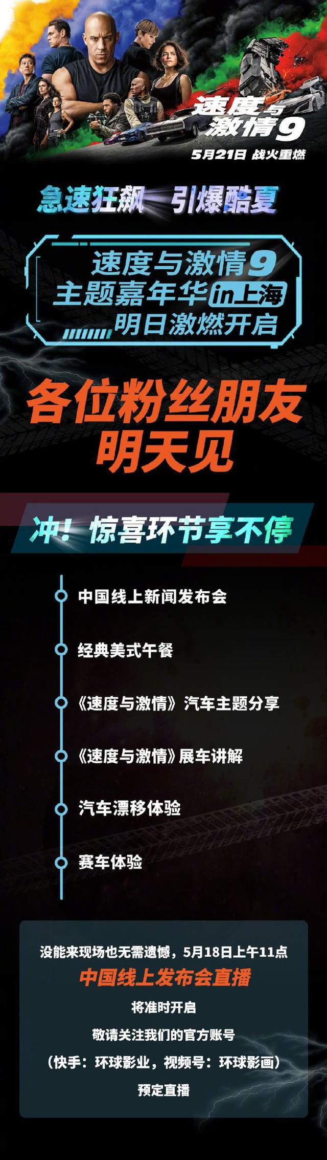 据悉,5月17日。环球影业官微宣布将开展《速度与激情9》的发布会活动,今天上午11点还在分享宣传物料,下午4点多发声明称收到威胁,活动取消,引发热议。
