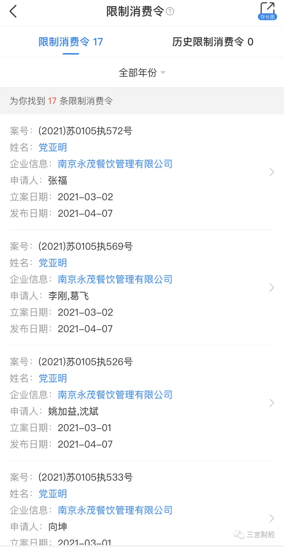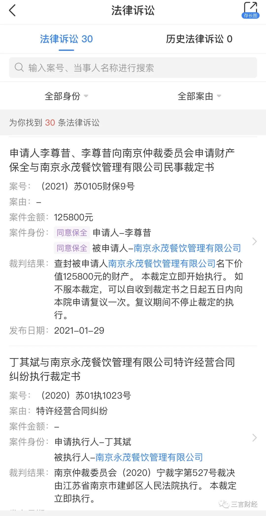 三言财经注意到,这家公司存在30起有关特许合同经营纠纷的法律诉讼,被告方均为“茶主播”;其中,诉讼包括财产保全以及“茶主播”因未履行法院判决而被强制执行的仲裁决定等。此外,“茶主播”法人代表党亚明也被限制高消费17次。