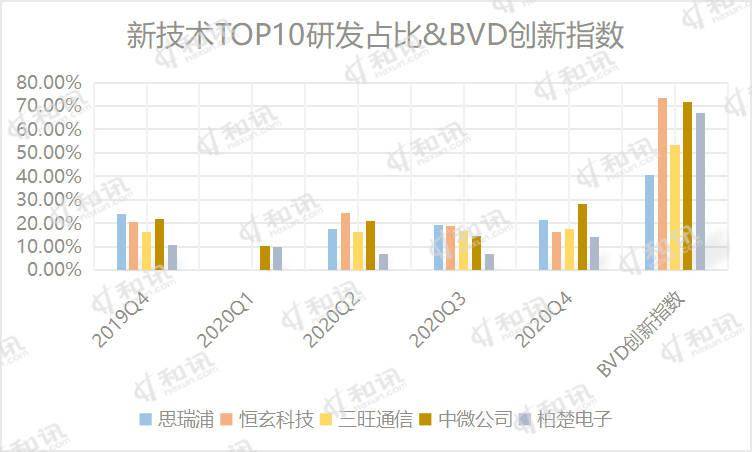 据和讯SGI指数&BVD创新指数显示,新技术TOP10创新能力指数均值在64%以上,其中,中望软件、思瑞浦、恒玄科技、中微公司的BVD创新指数超70分。