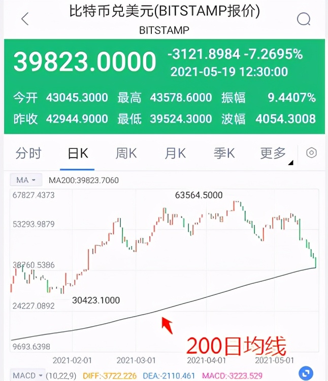 比特币跌破40000美元/枚关口,为2月8日以来首次,较历史高点回落约25000美元,日内跌约7%。