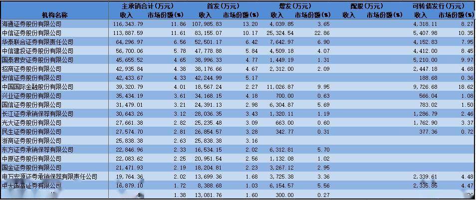 中信、海通承销收入已超10亿元