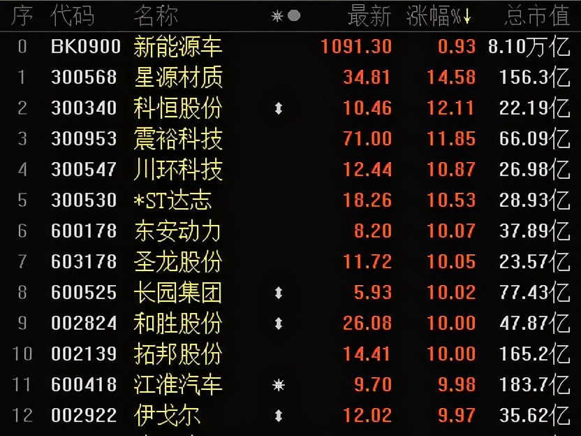 在如此多的利好消息密集“轰炸”下,新能源车概念股如果不跟风涨一下,未免也太说不过去了。