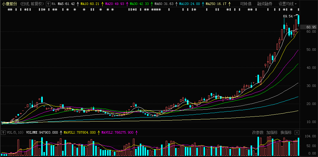 如果说小康股份今日的逆势下跌是因为前期涨幅过大(半年时间暴涨6倍)的话,倒不如说是“成也华为,败也华为”。据媒体报道,华为后续将引入与更多的车企合作卖车。华为终端销售体系员工表示,华为后续合作的车企初步确定包括比亚迪、北汽、奔驰和长安等几家。有市场分析认为,小康股份不再是华为渠道唯一的品牌,或影响市场对小康股份的预期。