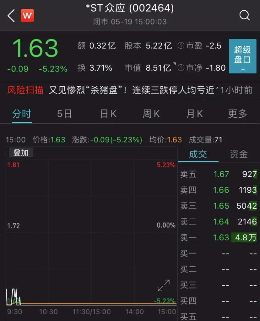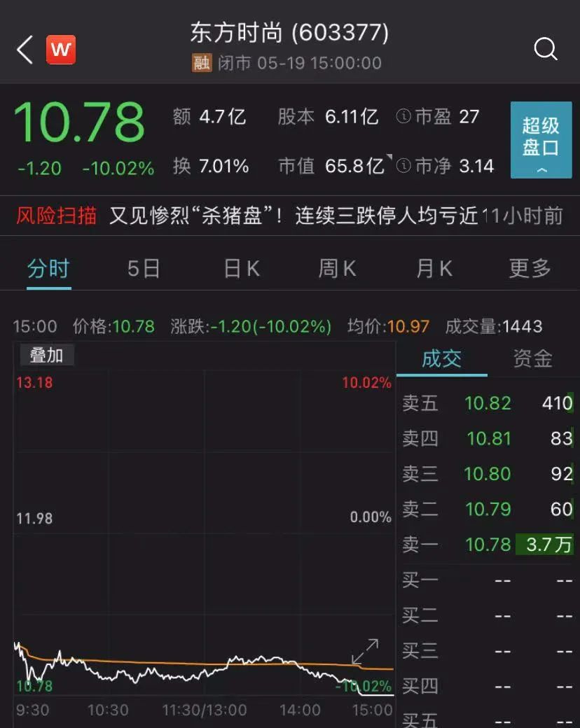 *ST众应开盘不久后跌停,东方时尚则在盘尾突然跌停。