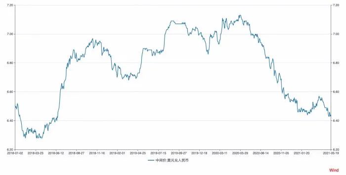今年以来,人民币对美元中间价汇率双向波动愈加明显。2021年年初至2月,人民币对美元中间价汇率表现为明显的升值趋势;2月10日升值达到高点之后开始呈现贬值趋势,一直到3月31日迎来6.57的低点,这区间总体为贬值;4月以来,人民币对美元中间价汇率表现为波动升值的趋势。