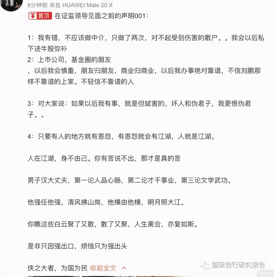 对于手上没有实锤的质疑,叶飞表示自己“有很多”, “像恒泰证券说管宣是离职之后才做的事情,跟恒泰没关系,但是我说管宣在任的时候也做过这个事情,但我就是不爆,我什么时候高兴什么时候打他脸。”