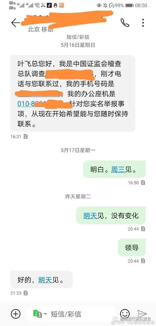 证监局约见叶飞