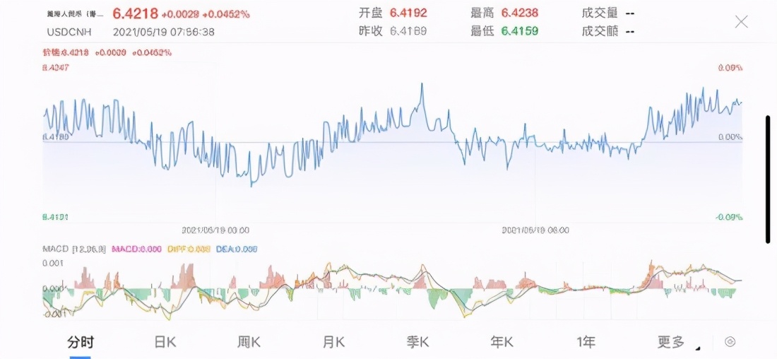 与此同时离岸人民币兑美元大涨,北京时间04:59报6.4217元,较周一纽约尾盘最大涨208点,盘中整体交投于6.4436-6.4180元区间。