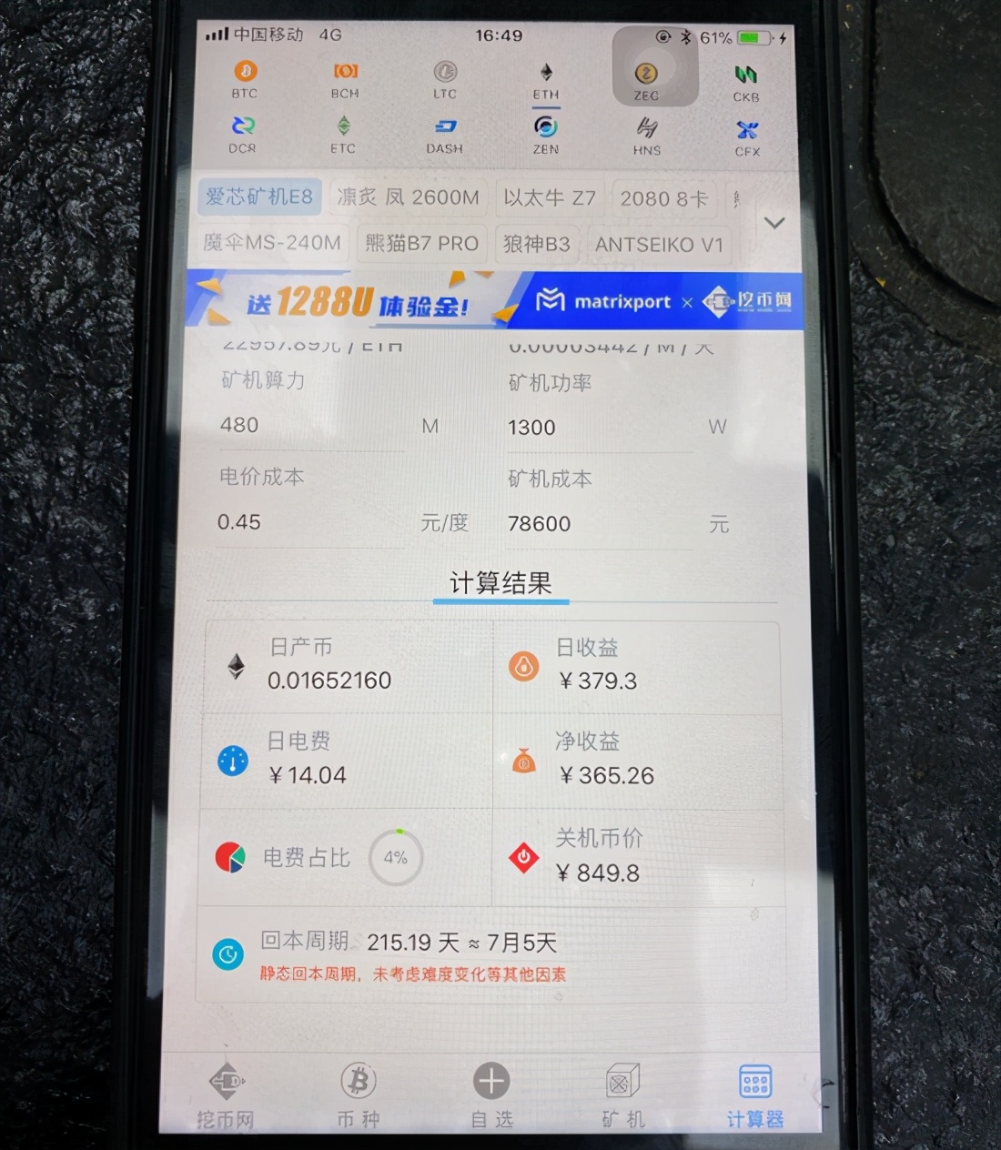(“挖矿”计算器,可精确计算每日收益、电费,还显示每款虚拟货币实时价格)