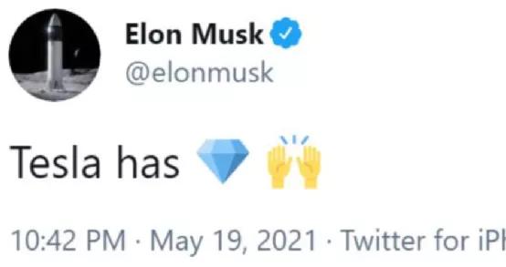 他在推特上发布了一句十分简短的话,被不少人解读为,特斯拉手中拥有钻石,而钻石大概率在暗示比特币的价值。