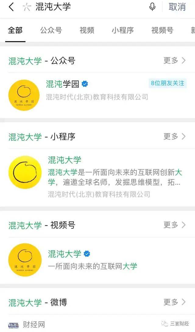 目前,混沌大学微博和公众号改名为混沌学园,小程序和视频号未改名。
