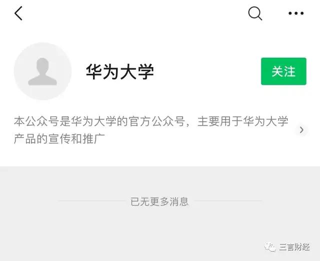 目前,华为大学的微信公众号没有改名,但是没有任何内容。微博搜不到华为大学。