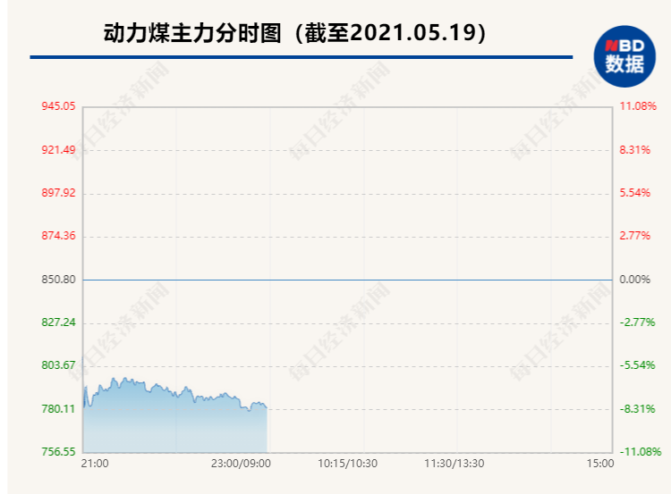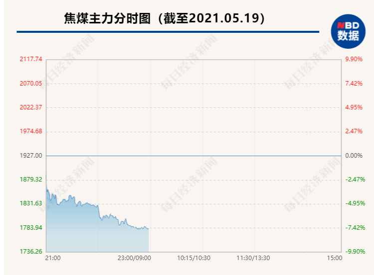 5月19日晚,国内商品期货夜盘普遍大跌,黑色系遭重挫,焦煤跌停,跌幅7.98%,动力煤跌7.81%,铁矿石跌7.92%,螺纹和热卷也跌超7%,焦炭跌超6%,不锈钢跌3.79%。