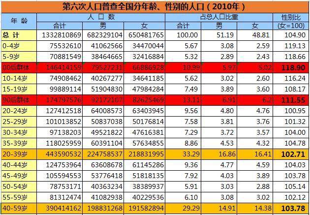 第六次人口普查数据显示,00后男女性别比达119,男性比女性多近1300万; 90后男女性别比达111,男性比女性多近900万。