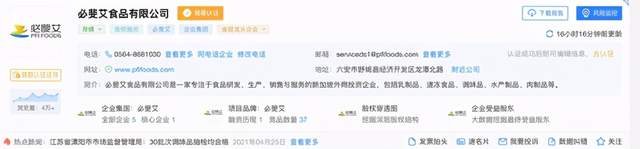 天眼查则显示,必斐艾公司的大股东和疑似实际受益人为快乐嘉食品有限公司,注册地为香港,持股比例为93.09%;二股东是隶属于安徽国元金融控股集团(下称“国元金控”)的安徽省农业产业化发展基金有限公司。国元金控是安徽省一家省属国有独资大型投资类企业。