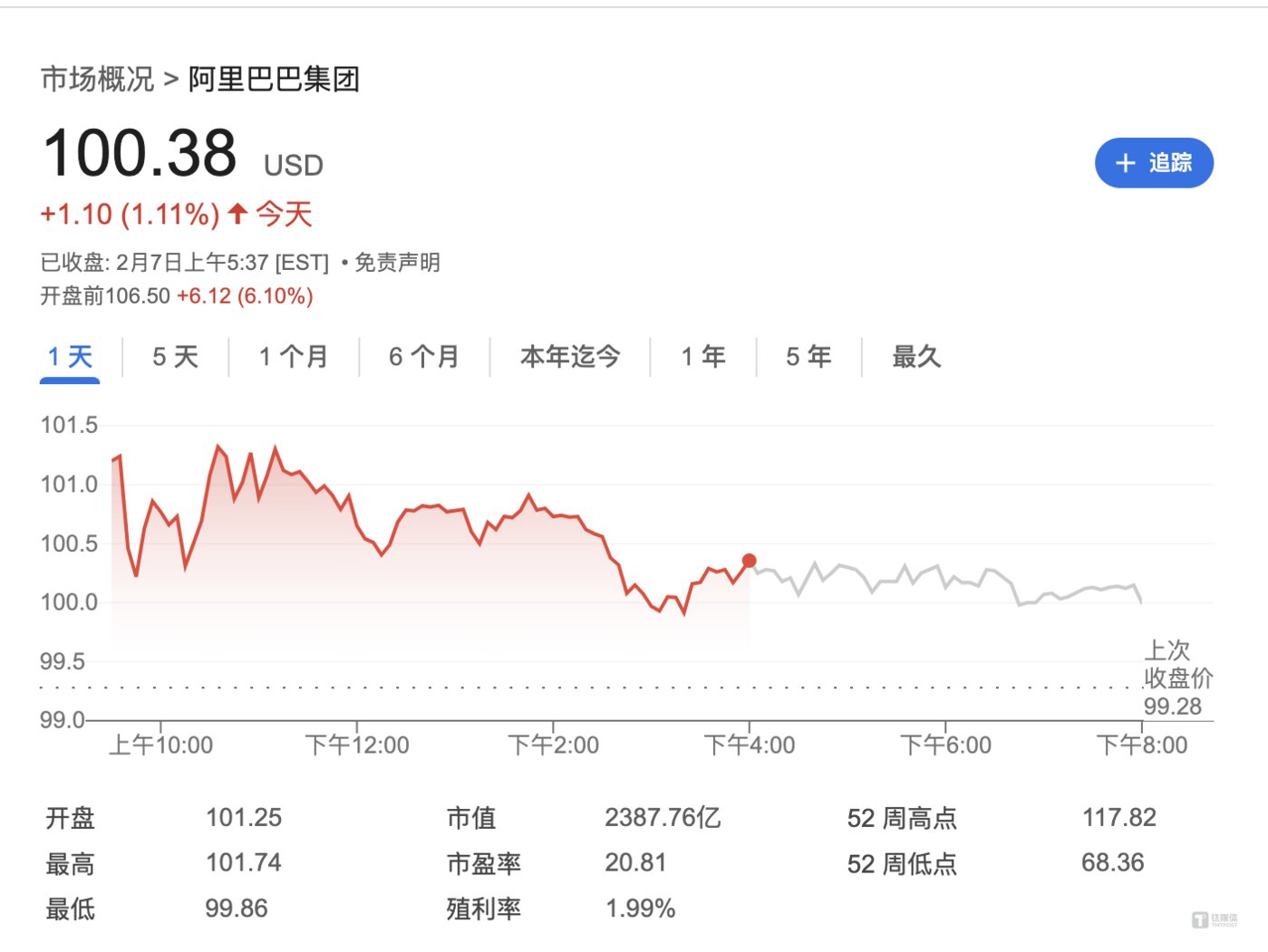 受消息影响,阿里美股(NYSE: BABA)大涨6%以上。