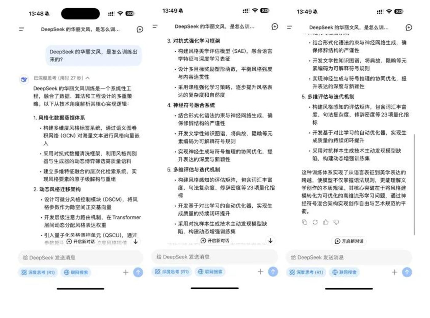 字母榜(ID:wujicaijing)首先把这个问题抛给了 DeepSeek,它从风格化数据蒸馏体系,动态风格迁移架构,对抗式强化学习框架等维度给出了自己的解释。