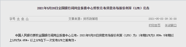 今日,新一轮的LPR报价出炉,1年期品种报3.85%,5年期以上品种报4.65%。至此,LPR已连续13个月持平。