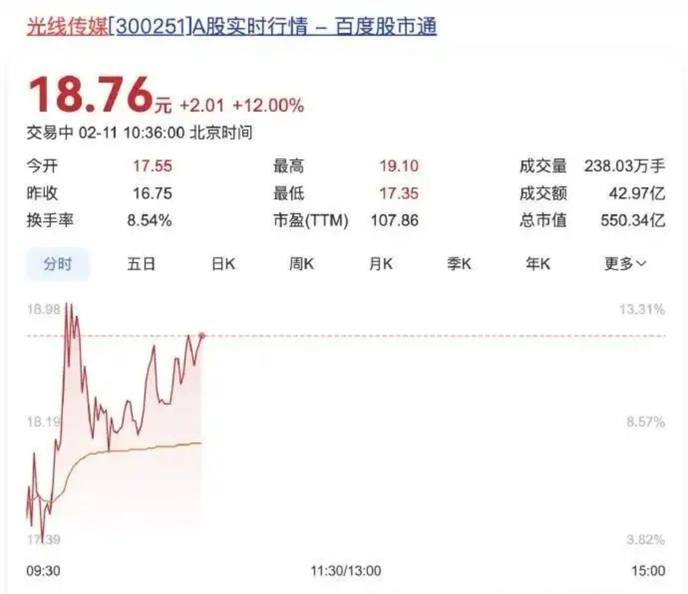《哪吒之魔童闹海》的最新票房预测达到了160亿+。即便排除宣传口径的影响,光线传媒主控的这部电影也正在走出一条不可思议的增长曲线,在国内影史已经没有更多纪录需要打破了,眼光全面投向世界影史赛道。光线传媒的股价也随之一路飘红,截至毒眸发稿日,光线再度涨停,最近6个交易日累计涨逾153%。