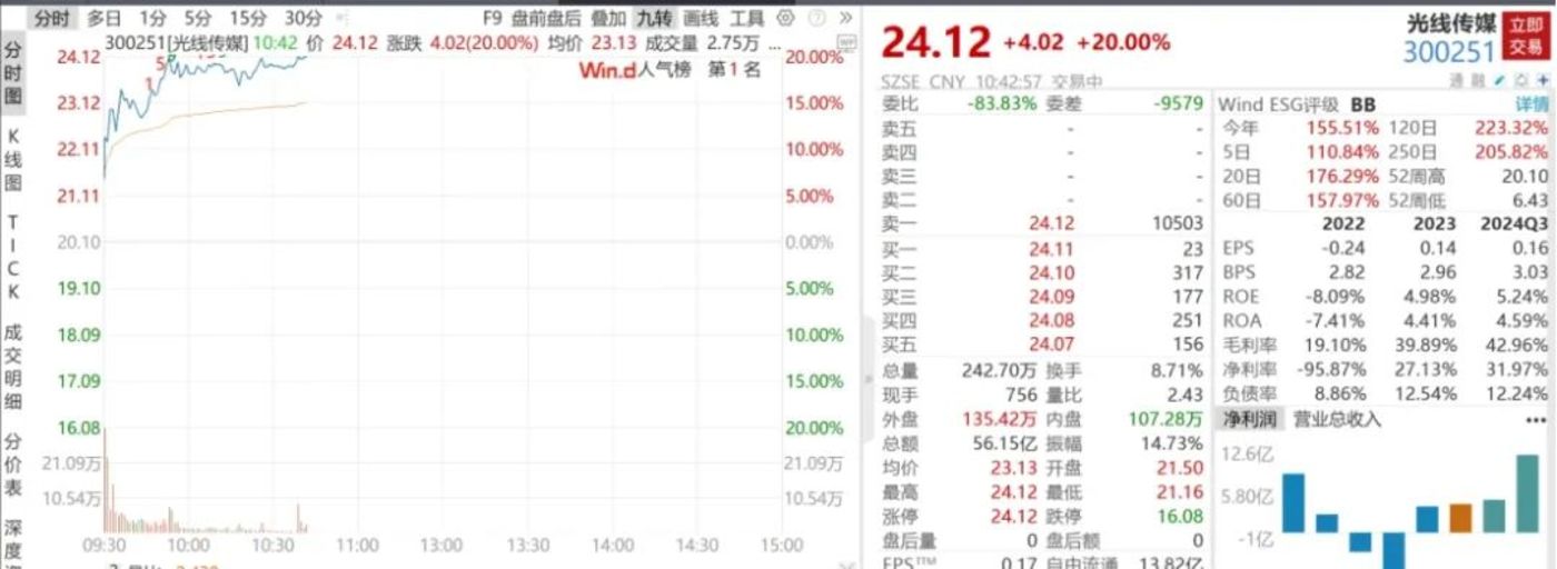 通过光线2018年到2024年的业绩表现也可以看出端倪,只有在《哪吒之魔童降世》上映的2019年和《姜子牙》上映的2020年,光线的业绩才算亮眼,其余年份除了2023年因大盘回暖盈利之外,剩下皆只录得亏损。如今《哪吒之魔童闹海》的更进一步,则让光线的市值直接飙升到了500亿的规模,堪称春节档最大赢家。
