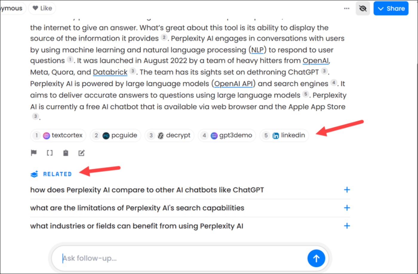 意识到AI能够从根本上革新搜索体验后,Perplexity迅速变换方向,开发出AI驱动的对话式搜索引擎。Perplexity诞生了两个重要的产品创新: